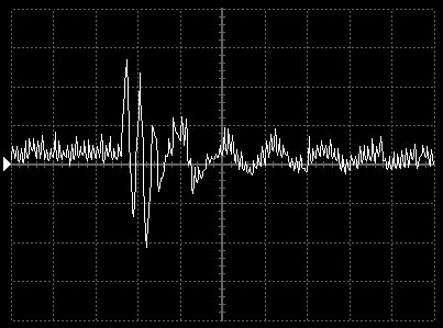 Empfindlichkeit pro Bildschirmteilung: 10 Millivolt (im Bild Vertical CH.A, Einstellung AC).