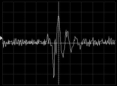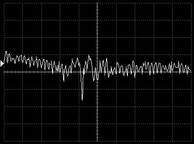 Empfindlichkeit pro Bildschirmteilung: 10 Millivolt (im Bild Vertical CH.A, Einstellung AC).