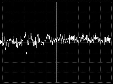 Empfindlichkeit pro Bildschirmteilung: 10 Millivolt (im Bild Vertical CH.A, Einstellung AC).