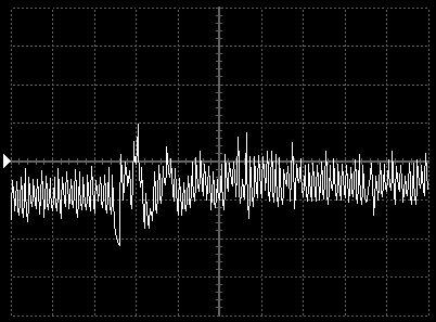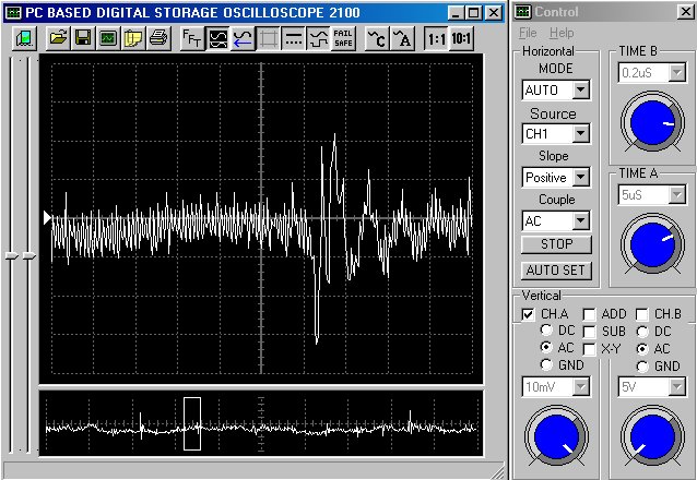 Empfindlichkeit pro Bildschirmteilung: 10 Millivolt (im Bild Vertical CH.A, Einstellung AC).
