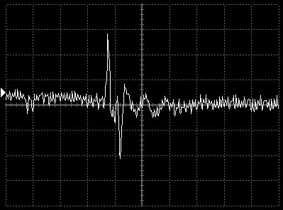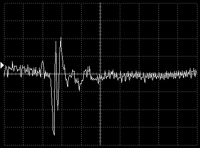 Empfindlichkeit pro Bildschirmteilung: 10 Millivolt (im Bild Vertical CH.A, Einstellung AC).
