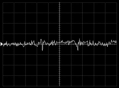 Empfindlichkeit pro Bildschirmteilung: 10 Millivolt (im Bild Vertical CH.A, Einstellung AC).