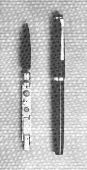Zum Einsatz kommen auch Miniaturtonbandgeräte um Gespräche aufzunehmen. Folgendes Bild zeigt ein in einen Kugelschreiber eingebautes Tonbandgerät, daß verdeckt getragen werden kann und eine Aufnahmedauer von 33 Minuten hat.