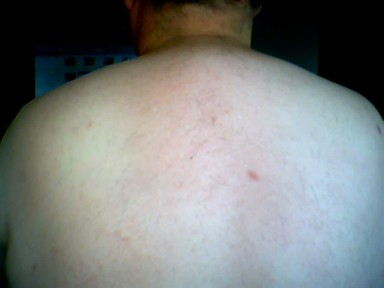 Die Lage der Stichverletzung zwischen den Schultertblättern ist auf dem nächsten Bild zu erkennen.