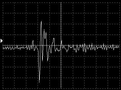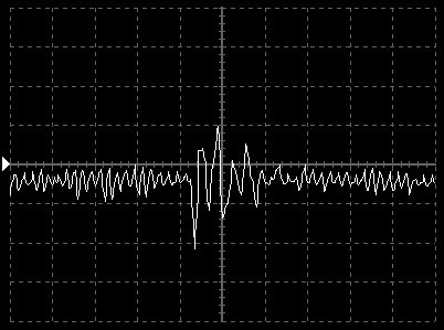 Empfindlichkeit pro Bildschirmteilung: 10 Millivolt (im Bild Vertical CH.A, Einstellung AC).