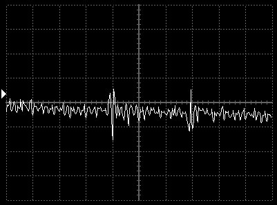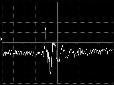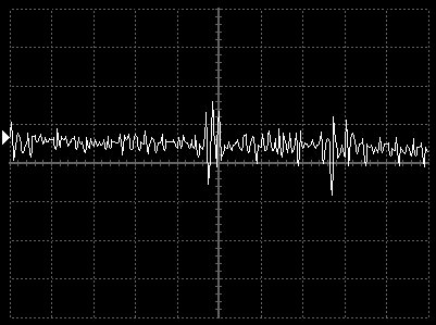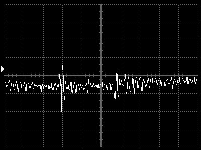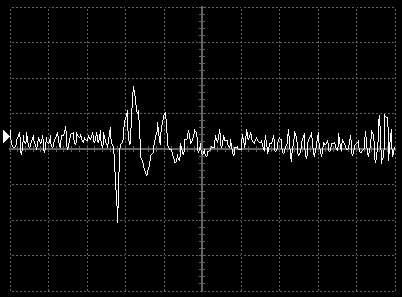 Empfindlichkeit pro Bildschirmteilung: 10 Millivolt (im Bild Vertical CH.A, Einstellung AC).