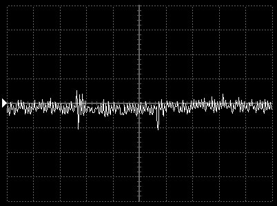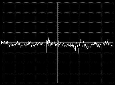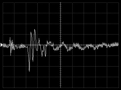 Empfindlichkeit pro Bildschirmteilung: 10 Millivolt (im Bild Vertical CH.A, Einstellung AC).