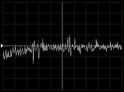 Empfindlichkeit pro Bildschirmteilung: 10 Millivolt (im Bild Vertical CH.A, Einstellung AC).