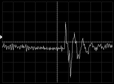 Empfindlichkeit pro Bildschirmteilung: 10 Millivolt (im Bild Vertical CH.A, Einstellung AC).