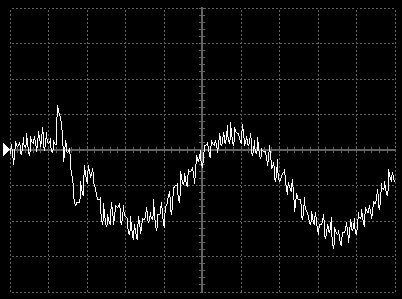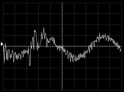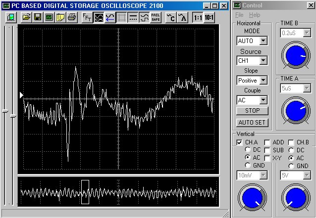 Empfindlichkeit pro Bildschirmteilung: 10 Millivolt (im Bild Vertical CH.A, Einstellung AC).