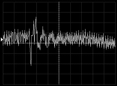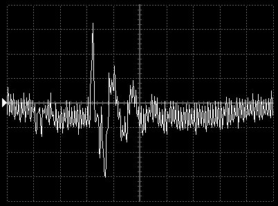 Empfindlichkeit pro Bildschirmteilung: 10 Millivolt (im Bild Vertical CH.A, Einstellung AC).