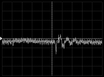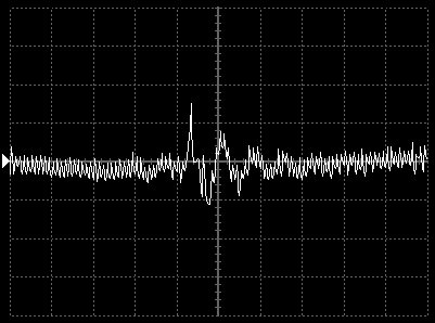 Empfindlichkeit pro Bildschirmteilung: 20 Millivolt (im Bild Vertical CH.A, Einstellung AC).