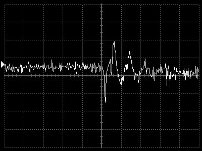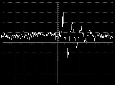Empfindlichkeit pro Bildschirmteilung: 10 Millivolt (im Bild Vertical CH.A, Einstellung AC).