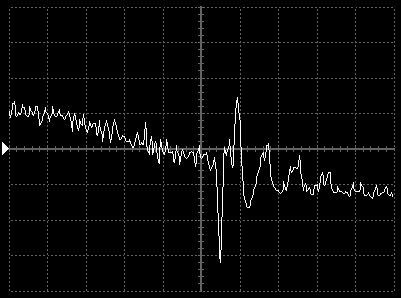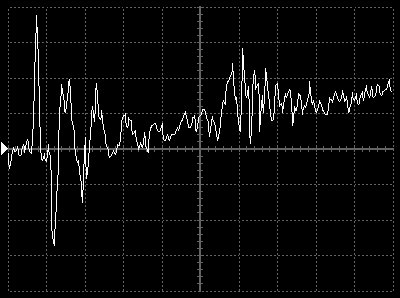 Wegen der Stärke des oben gezeigten Signals geben wir das gleiche Signal hier noch einmal mit einer Empfindlichkeit pro Bildschirmteilung von 20 Millivolt wieder: