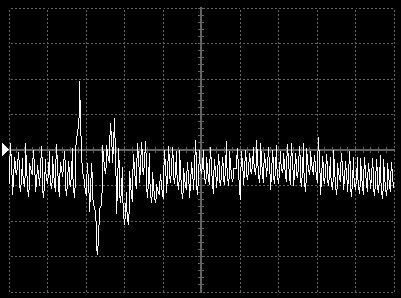 Empfindlichkeit pro Bildschirmteilung: 10 Millivolt (im Bild Vertical CH.A, Einstellung AC).