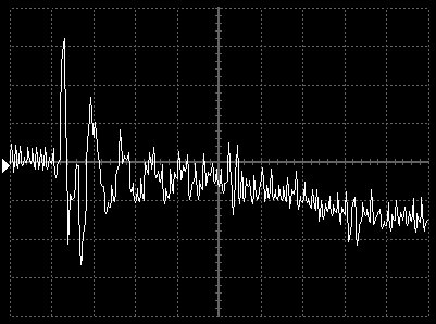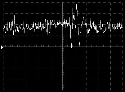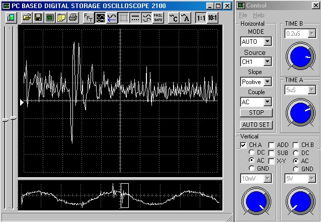 Empfindlichkeit pro Bildschirmteilung: 10 Millivolt (im Bild Vertical CH.A, Einstellung AC).