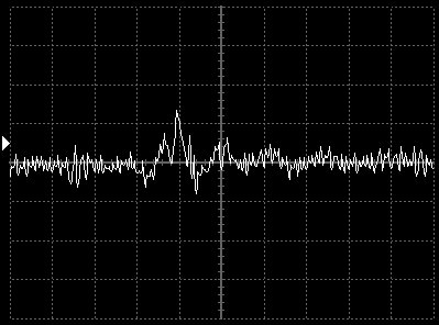 Empfindlichkeit pro Bildschirmteilung: 10 Millivolt (im Bild Vertical CH.A, Einstellung AC).