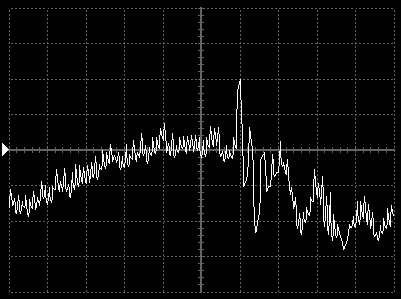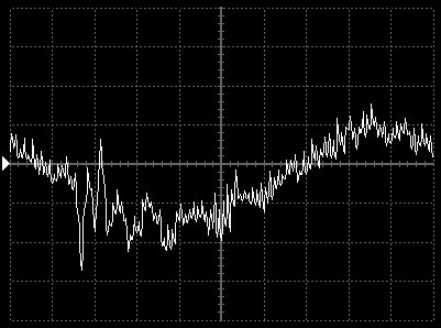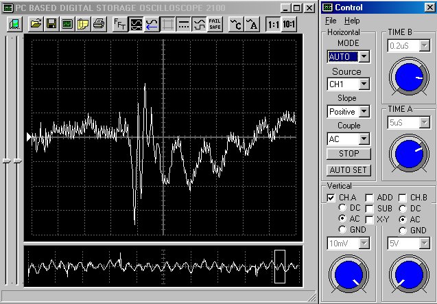 Empfindlichkeit pro Bildschirmteilung: 10 Millivolt (im Bild Vertical CH.A, Einstellung AC).