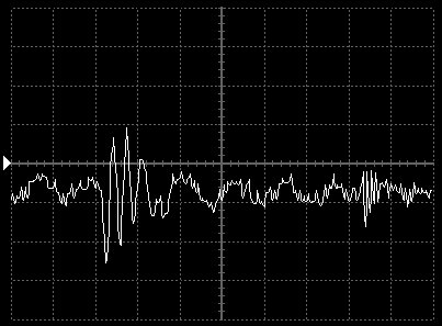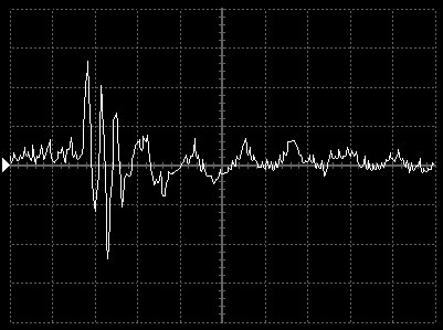 Empfindlichkeit pro Bildschirmteilung: 10 Millivolt (im Bild Vertical CH.A, Einstellung AC).