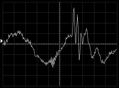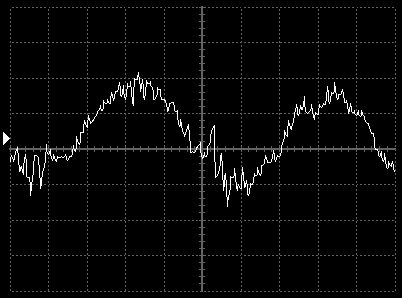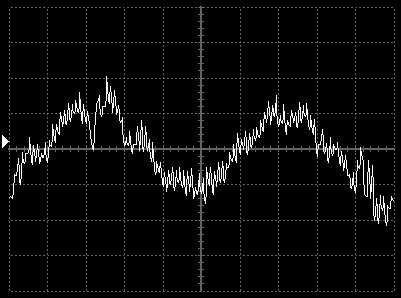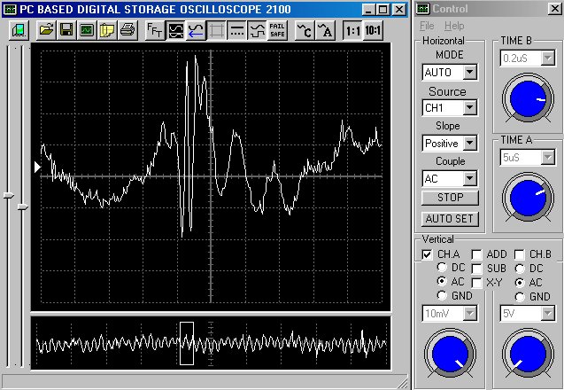 Empfindlichkeit pro Bildschirmteilung: 10 Millivolt (im Bild Vertical CH.A, Einstellung AC).