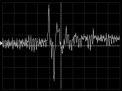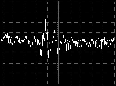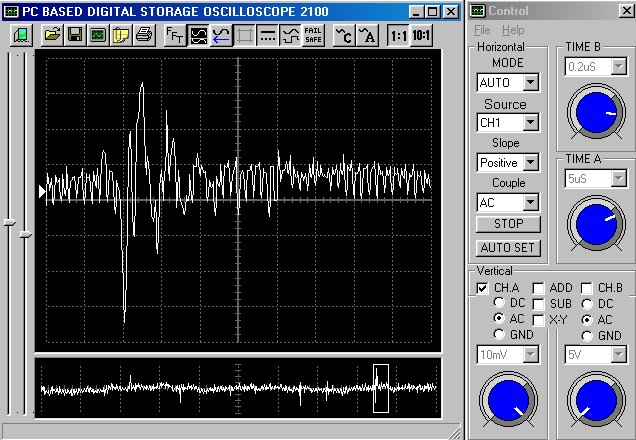 Empfindlichkeit pro Bildschirmteilung: 10 Millivolt (im Bild Vertical CH.A, Einstellung AC).