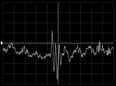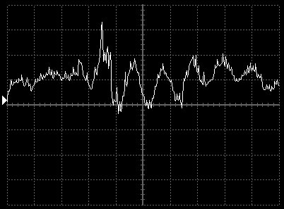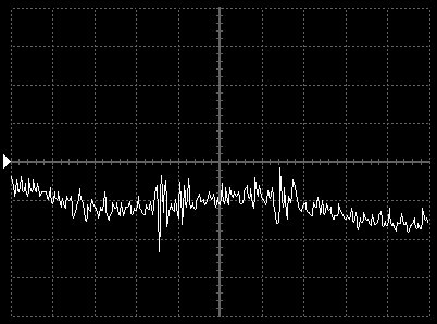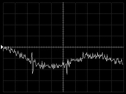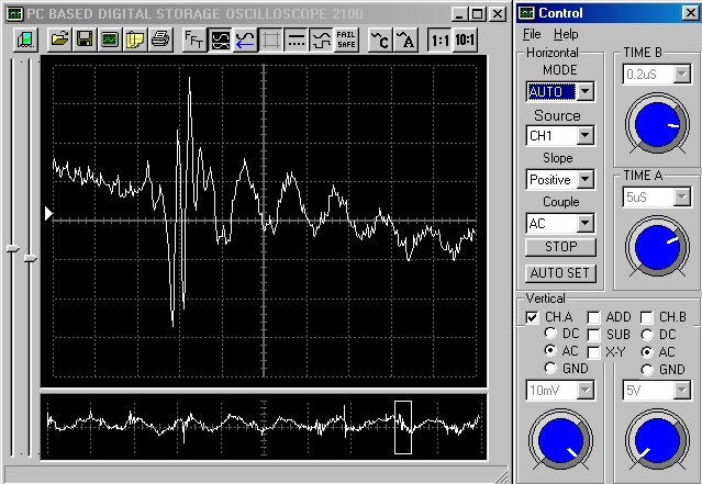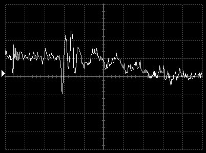 Empfindlichkeit pro Bildschirmteilung: 10 Millivolt (im Bild Vertical CH.A, Einstellung AC).
