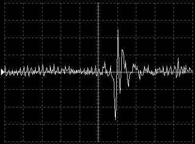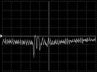 Empfindlichkeit pro Bildschirmteilung: 10 Millivolt (im Bild Vertical CH.A, Einstellung AC).