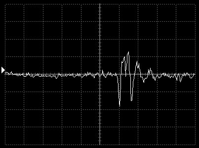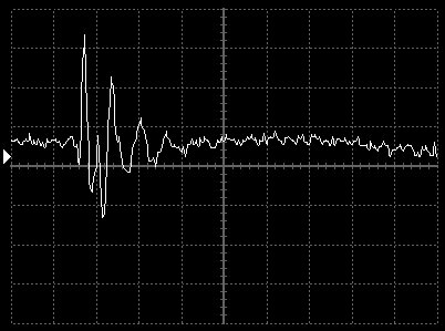 Empfindlichkeit pro Bildschirmteilung: 10 Millivolt (im Bild Vertical CH.A, Einstellung AC).