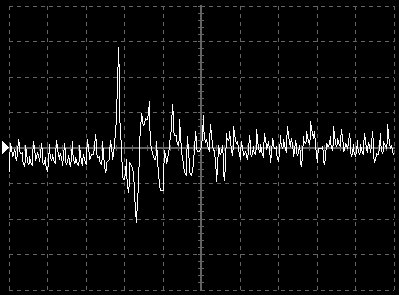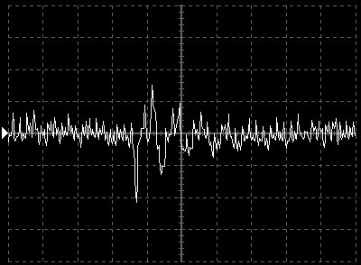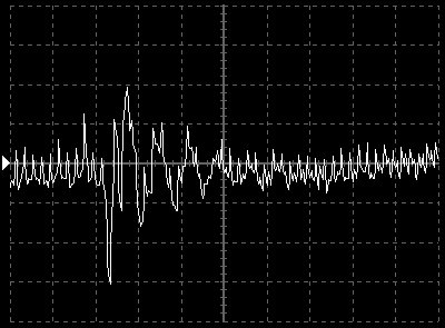 Empfindlichkeit pro Bildschirmteilung: 10 Millivolt (im Bild Vertical CH.A, Einstellung AC).