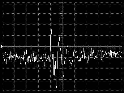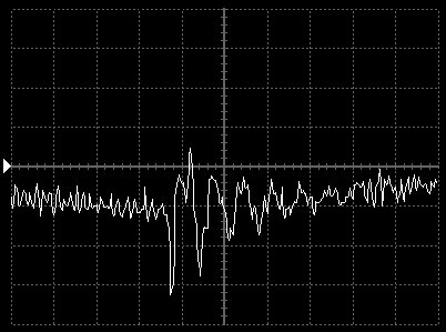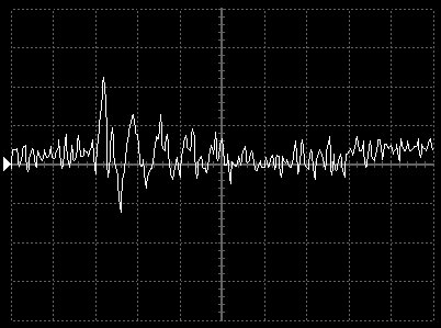 Empfindlichkeit pro Bildschirmteilung: 10 Millivolt (im Bild Vertical CH.A, Einstellung AC).