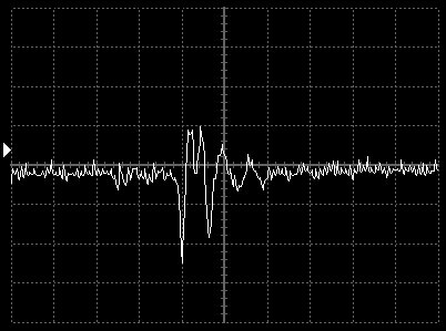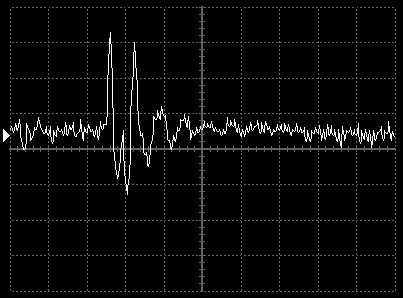 Empfindlichkeit pro Bildschirmteilung: 10 Millivolt (im Bild Vertical CH.A, Einstellung AC).
