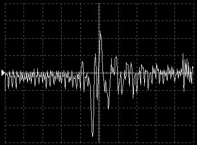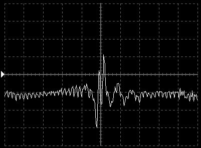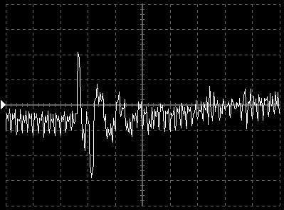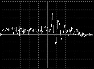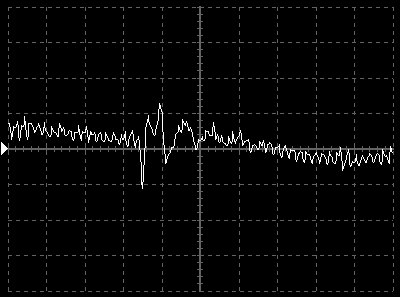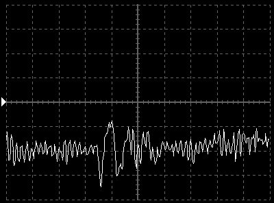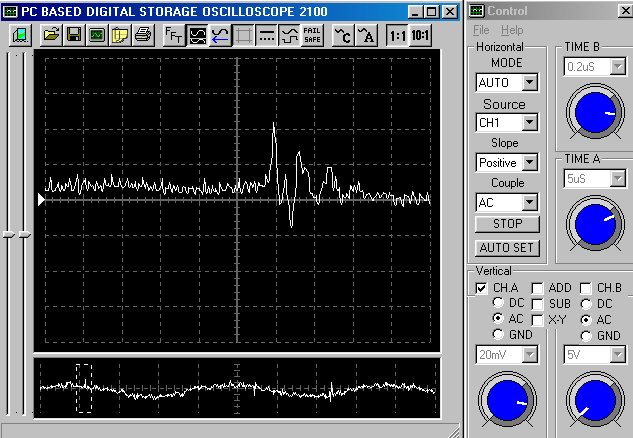 Empfindlichkeit pro Bildschirmteilung: 20 Millivolt (im Bild Vertical CH.A, Einstellung AC).