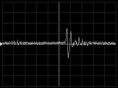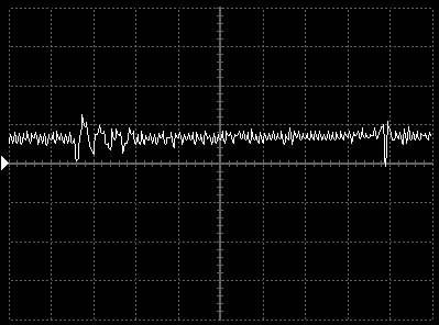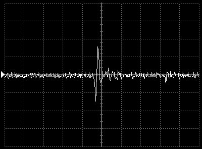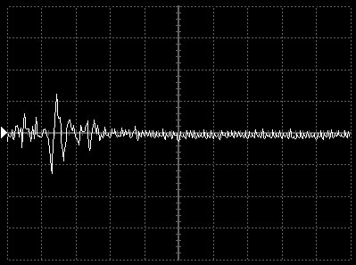 Empfindlichkeit pro Bildschirmteilung: 20 Millivolt (im Bild Vertical CH.A, Einstellung AC).