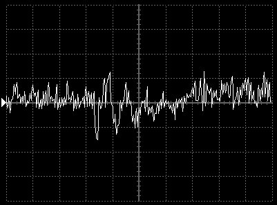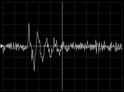 Empfindlichkeit pro Bildschirmteilung: 10 Millivolt (im Bild Vertical CH.A, Einstellung AC).