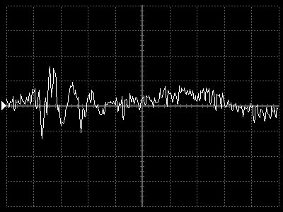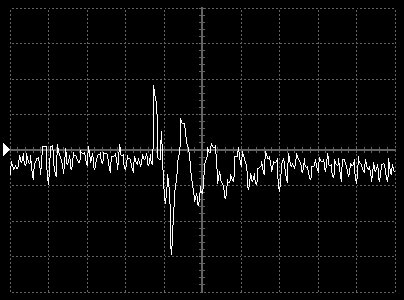 Empfindlichkeit pro Bildschirmteilung: 10 Millivolt (im Bild Vertical CH.A, Einstellung AC).