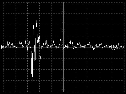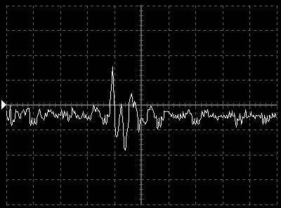 Empfindlichkeit pro Bildschirmteilung: 10 Millivolt (im Bild Vertical CH.A, Einstellung AC).