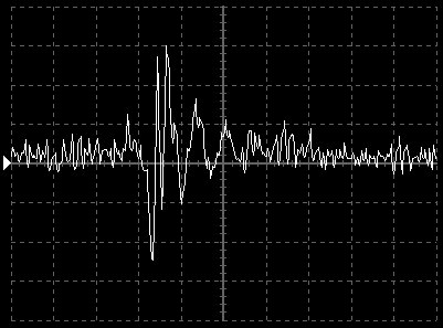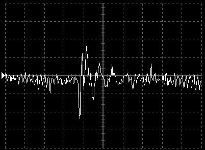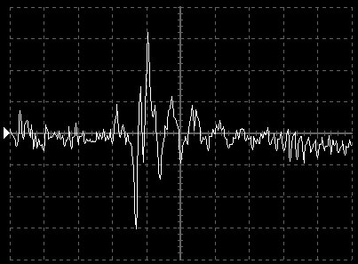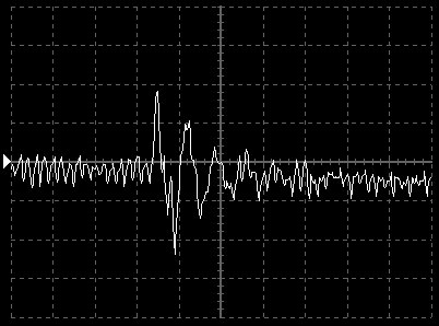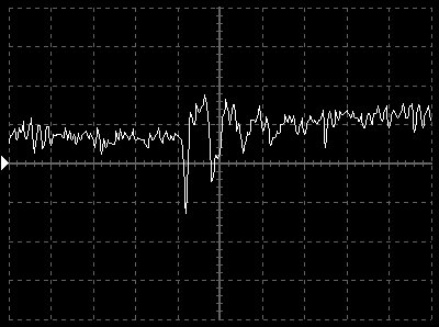 Empfindlichkeit pro Bildschirmteilung: 10 Millivolt (im Bild Vertical CH.A, Einstellung AC).