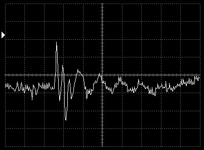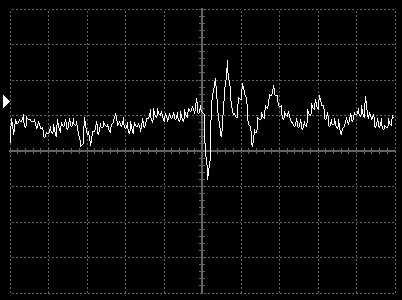 Empfindlichkeit pro Bildschirmteilung: 10 Millivolt (im Bild Vertical CH.A, Einstellung AC).
