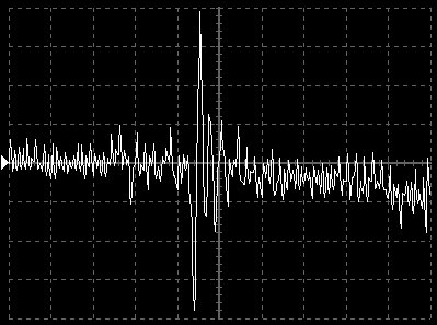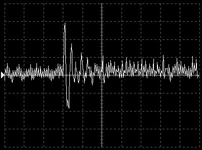 Empfindlichkeit pro Bildschirmteilung: 10 Millivolt (im Bild Vertical CH.A, Einstellung AC).