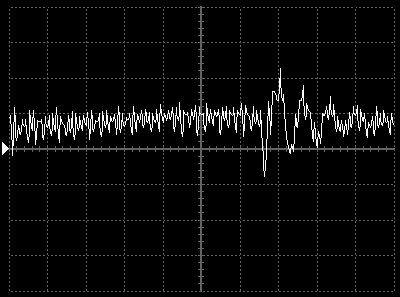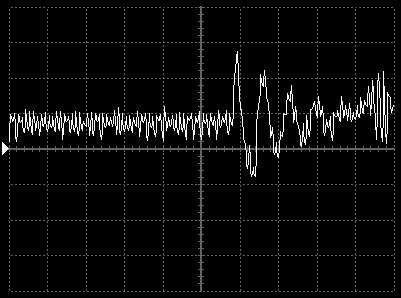 Empfindlichkeit pro Bildschirmteilung: 10 Millivolt (im Bild Vertical CH.A, Einstellung AC).