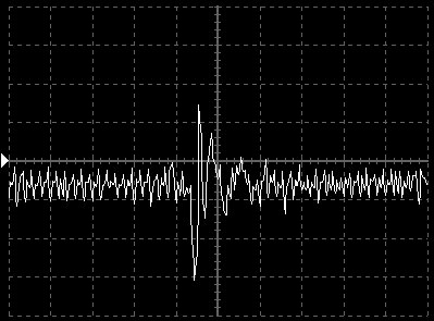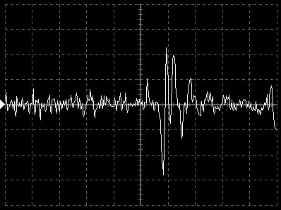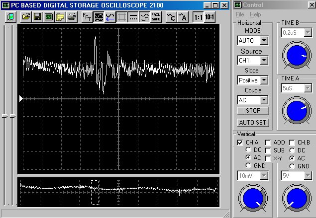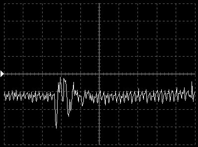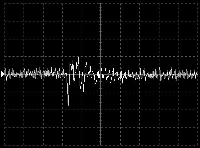 Empfindlichkeit pro Bildschirmteilung: 10 Millivolt (im Bild Vertical CH.A, Einstellung AC).