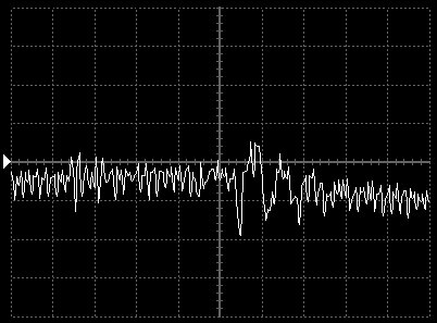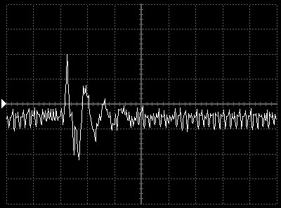 Empfindlichkeit pro Bildschirmteilung: 10 Millivolt (im Bild Vertical CH.A, Einstellung AC).