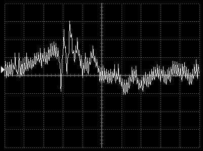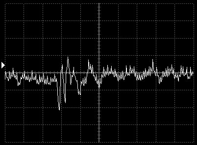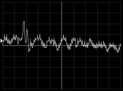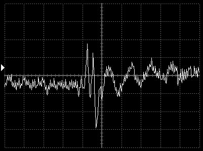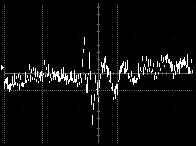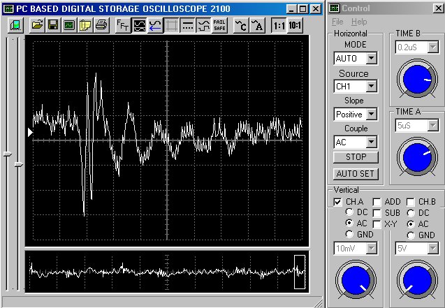 Empfindlichkeit pro Bildschirmteilung: 10 Millivolt (im Bild Vertical CH.A, Einstellung AC).