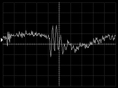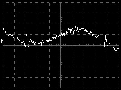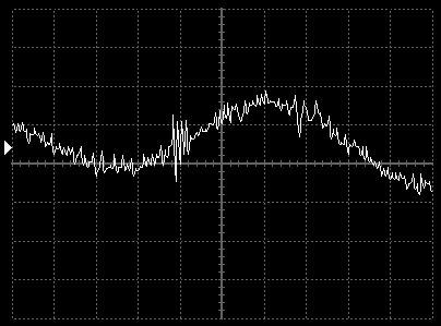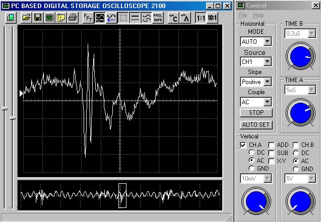 Empfindlichkeit pro Bildschirmteilung: 10 Millivolt (im Bild Vertical CH.A, Einstellung AC).
