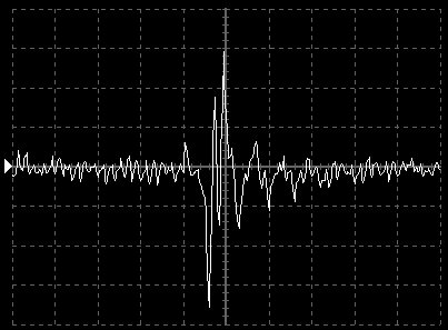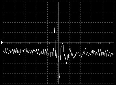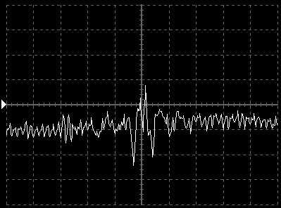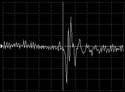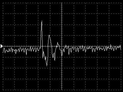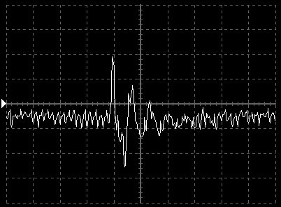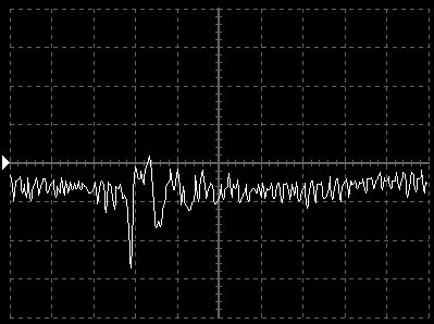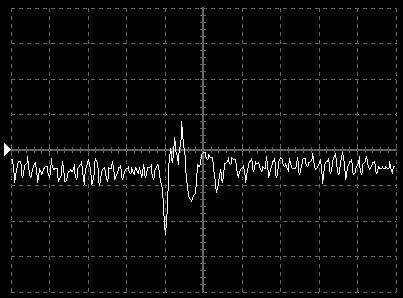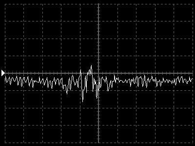 Empfindlichkeit pro Bildschirmteilung: 10 Millivolt (im Bild Vertical CH.A, Einstellung AC).