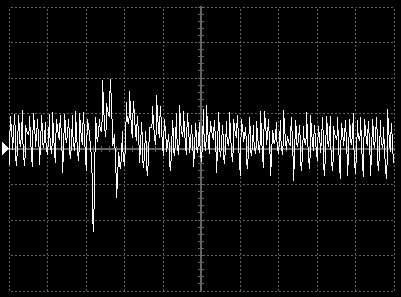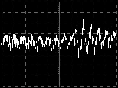 Empfindlichkeit pro Bildschirmteilung: 10 Millivolt (im Bild Vertical CH.A, Einstellung AC).