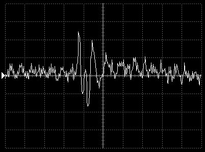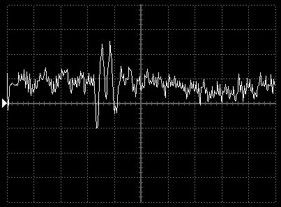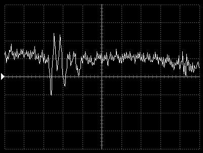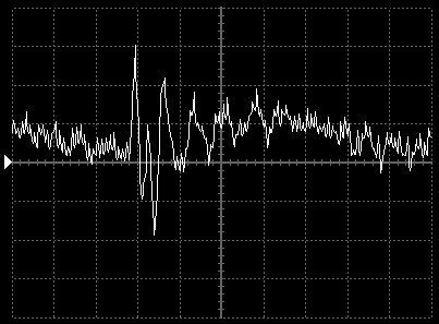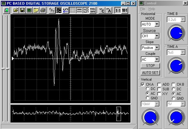 Empfindlichkeit pro Bildschirmteilung: 10 Millivolt (im Bild Vertical CH.A, Einstellung AC).