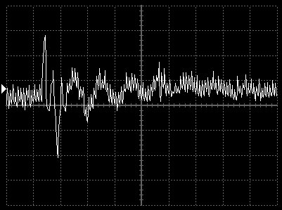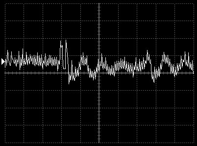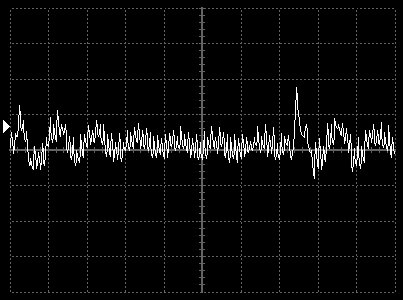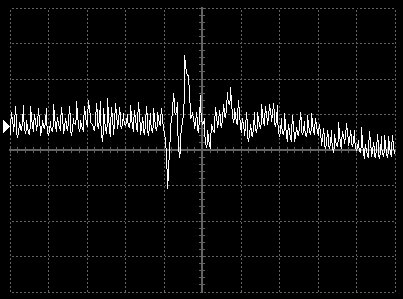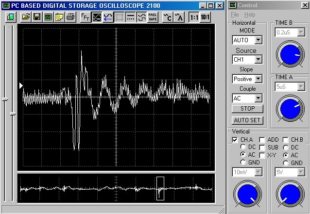 Empfindlichkeit pro Bildschirmteilung: 10 Millivolt (im Bild Vertical CH.A, Einstellung AC).