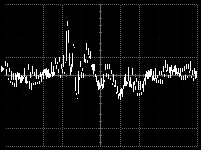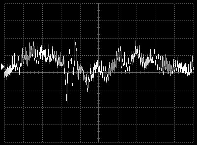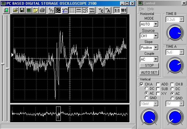 Empfindlichkeit pro Bildschirmteilung: 10 Millivolt (im Bild Vertical CH.A, Einstellung AC).