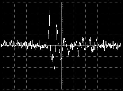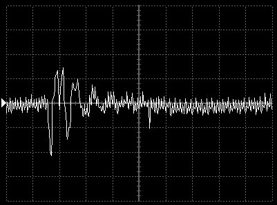 Empfindlichkeit pro Bildschirmteilung: 10 Millivolt (im Bild Vertical CH.A, Einstellung AC).